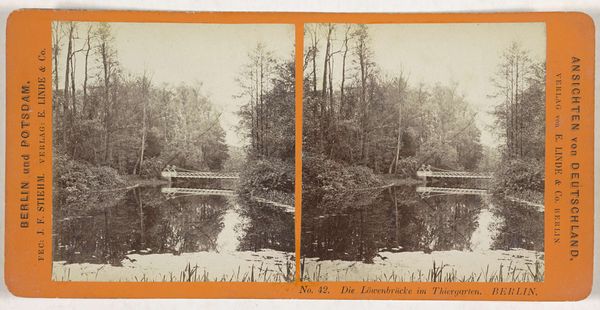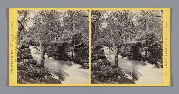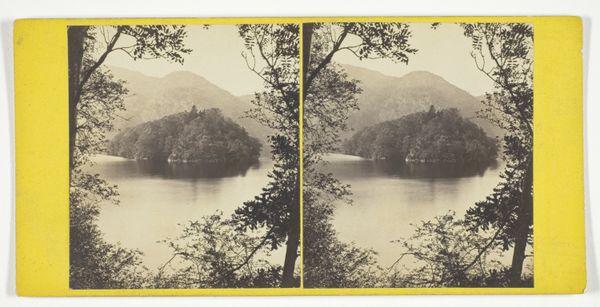 Editor: So, this is "The Rock called \"Dovedale Church,\" In the distance," created by W. Woodward. It’s an undated photograph presented as a stereograph. It’s lovely; the water seems to stretch out forever, and there’s almost a dreamlike quality to the landscape. What draws your eye when you look at this print? Curator: Immediately, I’m struck by how the photographer uses this stereograph to invite the viewer into a mediated experience of nature. Note how the mirroring subtly emphasizes a division, not just of space but almost of perception. The "church" rock, almost a vestige, becomes symbolic of the enduring, yet increasingly distant, natural world. What cultural anxieties do you think this evokes, especially given the time period’s rapid industrialization? Editor: That's interesting, a feeling of something being lost. I hadn't considered that. So the stereograph isn’t just a novelty, it’s like...a lament? Curator: Precisely! Look closer. The soft focus, characteristic of pictorialism, further romanticizes the scene, obscuring harsh realities. Do you see how this blurring could represent a kind of selective memory, a longing for a perhaps idealized past? The dual image is also significant; a duplication implies that the natural world isn't directly experienced, but constantly filtered and re-presented. Does that reading resonate? Editor: Definitely! It makes me think about how even then, people were aware of humanity's impact on the landscape. The two viewpoints force us to consider our role in shaping the image, and by extension, the environment. I didn't appreciate all those layers at first glance. Curator: Indeed, images, particularly those crafted with such deliberate artistry, hold echoes of cultural memory and anxieties far beyond their immediate subject. Hopefully now you see how the duplication works almost like a hall of mirrors? What final thoughts come to mind? Editor: I’m walking away seeing the photograph as more than a pretty picture; it’s a symbol of a changing world, viewed through a lens of nostalgia. It gives me a lot to think about, particularly relating to pictorialism's aesthetic manipulation.