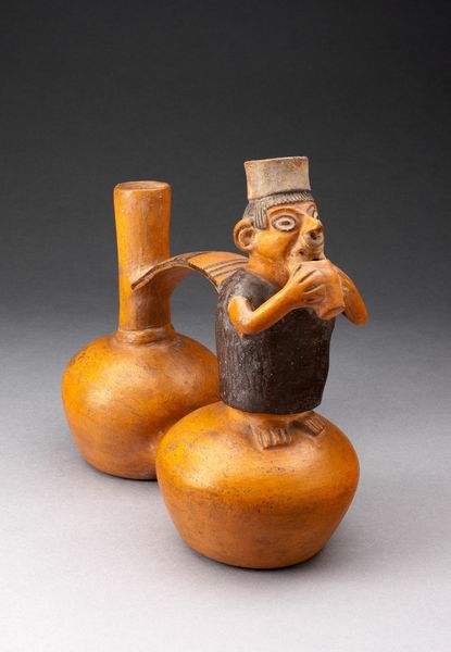 This ceramic spout vessel with a skeletal, tattooed figure attached to its handle was created by the Moche people. Observe the seated figure with its prominent facial tattoos and skeletal features, suggesting a deep connection to ancestor veneration. The Moche people believed their ancestors held significant power over their lives. The presence of tattoos is not merely decorative. It connects this figure to wider traditions where markings represented social status or ritual identity. Consider the ancient Egyptians and their use of tattoos for similar purposes. The way the figure is attached to the vessel connects the human and the functional, a potent reminder of the interplay between life and utility, where the spiritual sustains daily life. The emotional weight of this piece lies in its ability to evoke a sense of continuity, where the dead are not truly gone but remain intertwined with the living. These motifs have evolved, resurfacing in different guises across cultures and centuries, illustrating the enduring power of cultural memory.