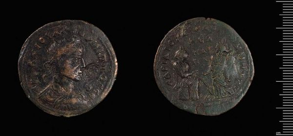 Curator: This is a sestertius, a Roman coin, featuring Otacilia Severa, likely made during her time as empress. The object is located at the Harvard Art Museums. Editor: It's really incredible to think of history you can hold in your hand. It's wild to think this coin probably bought someone's lunch, once upon a time. Curator: The coin's physical properties, its weight of 16.45 grams, and the material it is made from, lend it not only a utilitarian purpose but also an aesthetic quality. Editor: Definitely, the patina adds such depth. It is almost a ghost of time clinging to its surface. It really asks us to consider our own place in the continuum. Curator: Precisely. The study of such objects offers a robust understanding of Roman material culture. Editor: Well, I am going to grab a bite to eat; perhaps I will think of Otacilia Severa while I do.