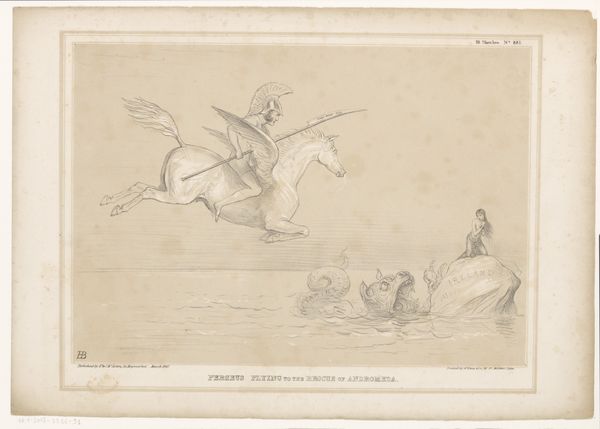 Editor: This delicate line drawing by John Flaxman, titled "Leucothea Preserving Ulysses," depicts a scene of rescue at sea. There's a sense of classical heroism but also vulnerability. What symbols strike you most powerfully in this piece? Curator: The veil offered by Leucothea is key. Veils often signify transitions, concealment, but also revelation. Here, it's a liminal object, a bridge between mortal peril and divine intervention. It echoes ancient rituals of protection and rebirth. Editor: Rebirth… that makes sense given Ulysses' journey. So, the veil represents more than just physical safety? Curator: Precisely. Consider the cultural memory embedded in Ulysses' struggle – the archetypal hero facing trials. Leucothea’s veil isn’t merely a life preserver; it's a visual echo of hope, a tangible manifestation of the divine's enduring compassion for humanity. Editor: That really adds another layer to the work. I hadn’t considered how loaded the image of a veil could be. Curator: Flaxman uses simplicity to amplify symbolism. The starkness allows us to focus on those key motifs and our cultural understanding of them. Editor: Thanks for illuminating those details. I see it so differently now.