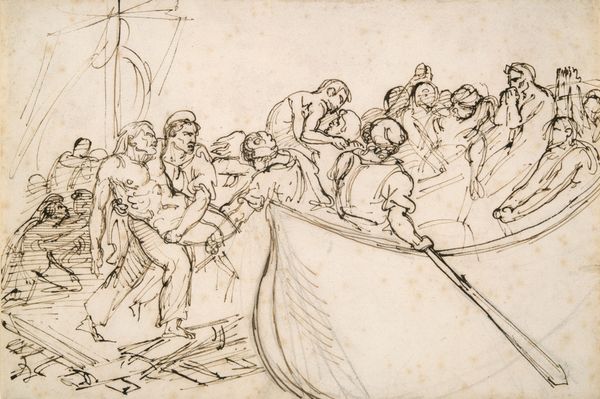Théodore Géricault made this pen and brown ink sketch of a boating party, and a woman wearing a tall hat, sometime in the early 19th century. This sheet of sketches offers a glimpse into the leisure activities of the French upper class during the Restoration period, after the fall of Napoleon, when there was a return to more traditional social hierarchies. Géricault himself was from a wealthy family and he moved in elevated social circles. This is evident in his choice of subject matter. Look closely, and you may notice how the figures in the boat, and the women with elaborate hats, reflect the fashion and social customs of the time. The artist’s choice to depict these scenes can be seen as a commentary on the privileges enjoyed by a select few. It makes me wonder what he thought about these people and their lives. While seemingly focused on the surface of society, the sketch subtly hints at the underlying social dynamics of early 19th century France.