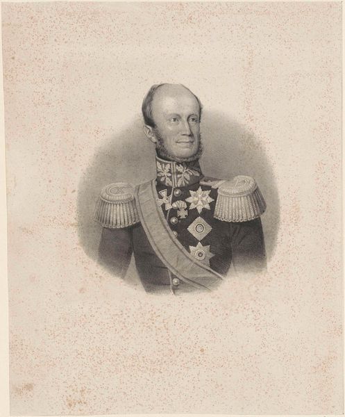 Editor: Here we have "Portrait of William II, King of the Netherlands," dating from 1847. It’s rendered in graphite, charcoal, or possibly even an engraving, judging by the fine lines. It has this regal, almost severe quality... What captures your attention most about this portrait? Curator: The gaze, undeniably! It's a stare that feels like it wants to know you as much as it wants you to acknowledge him. Funny, isn't it, how a simple drawing can attempt such grand power plays? And then there's all that ornamentation—the medals and braids. You get the feeling he’s very aware of his image. But is it pride, or the weight of expectation, etched onto his face? What do you think? Editor: I suppose it could be either! All those symbols of authority can seem a bit… suffocating. It makes me wonder about the person beneath the regal exterior. Curator: Precisely! The trick with portraits of rulers is always this dance between the person and the position. They were supposed to be simultaneously human and yet embody a nation. The artist attempts a record, the sitter demands control. Each looking into a mirror only they hold. So really, a drawing like this is about as close to time travel as we're likely to get, don't you think? Editor: That’s a lovely way to put it! I’ll definitely think about portraiture differently from now on. Curator: Wonderful! I find art's all the richer with new perspectives.