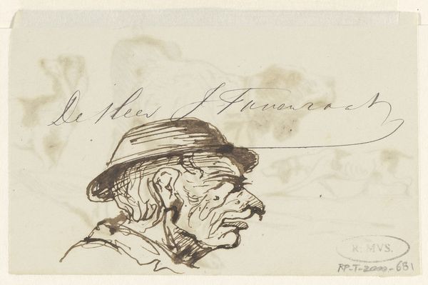 Editor: Here we have Johannes Tavenraat’s “Kop,” a graphite drawing from sometime between 1840 and 1880. There’s a certain vulnerability to this sketchy profile, almost as if we’re catching a glimpse of someone unaware. What do you see in this piece? Curator: I see a portrait, yes, but also an exercise in power dynamics typical of 19th-century academic art. Consider who was being portrayed and who was doing the portraying. This "Kop," or head study, wasn’t just about capturing a likeness, but about codifying social hierarchies. What might the class and racial identities of both the artist and sitter reveal about this dynamic? Editor: That's a good point! It really places the work within a broader historical context, beyond just aesthetics. Is there something about the style too? I see it's labeled as Romanticism, and I thought the "Romantic" part was only about showing pretty things! Curator: Romanticism wasn't simply about beauty; it also delved into power structures, the exoticized ‘other,’ and the subjugation of marginalized people through aesthetic representation. Tavenraat’s use of line and shadow, while seemingly innocent, contributes to a visual language that either reinforces or challenges existing social narratives. It’s our job to figure out which. Do you think it elevates the person he drew or judges them? Editor: I hadn't thought about it that way before, but now I see how much more there is to unpack. It really goes beyond just the surface. Thank you! Curator: My pleasure! Examining art through lenses of power and identity helps us engage critically with the past and understand its continued relevance.