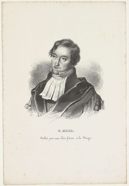 Editor: Here we have Jan Ensing’s "Portret van Frederik Christiaan de Greuve," made sometime between 1829 and 1894. It’s a pencil drawing, and the subject's gaze makes me wonder what he's contemplating. How do you read this portrait? Curator: The image certainly invites contemplation. Consider the time period: mid-19th century. The subject's attire suggests a person of status, perhaps a clergyman or academic. Ensing captures a particular kind of male intellectualism that was deeply rooted in societal power structures. What do you make of the sitter’s slightly averted gaze and hand gesture? Editor: He looks like he’s avoiding eye contact, or perhaps lost in thought. His hand is casually placed; is it meant to convey something about his character? Curator: Exactly. Think about portraiture conventions of the era. Artists were tasked with representing not just likeness but also social standing and moral character. The averted gaze could symbolize modesty or a deeper, more internalized intellect, aligning with philosophical ideals of the time that favored introspection. What social issues might someone like him have been engaging with or perhaps complicit in? Editor: So it's a conscious choice to portray him this way, placing him within the intellectual and social contexts of his time, maybe commenting on privilege or responsibility. The artist is really making a statement beyond just depicting the subject. Curator: Precisely. This portrait serves as a window into the construction of identity during the 19th century, inviting us to reflect on the role of portraiture in reinforcing or challenging prevailing power dynamics. It's much more than just a drawing of a man. Editor: That adds so much depth to the piece. I'm seeing the portrait as more than just an individual likeness, but as a statement about the social and intellectual climate of the time. Curator: Absolutely, it's about critically engaging with history. It's taught me to consider portraiture beyond mere representation and explore the socio-political contexts woven into the very act of depicting someone.
