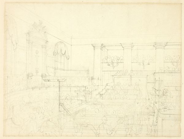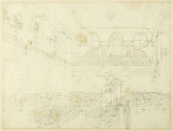 Augustus Charles Pugin made this pencil study of the House of Lords, offering a glimpse into the heart of British political power. It allows us to consider the social theater of governance. Completed as a preparatory sketch for the "Microcosm of London", the drawing emphasizes the architecture of the space and a tightly packed audience, and in doing so touches on the relationship between power, spectacle, and public perception. Made in the early 19th century, Britain was a society undergoing rapid transformation, with the industrial revolution and expanding empire reshaping its social, economic and political structures. The House of Lords, as the upper house of Parliament, represented a bastion of aristocratic power in this changing world. Pugin's image subtly hints at the debates and tensions inherent in a system where tradition and progress were constantly in contention. By studying such images alongside historical documents, parliamentary records, and political writings, we gain a richer understanding of the complex interplay between art, power, and society in 19th-century Britain.