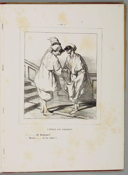 Editor: This lithograph by Paul Gavarni, titled "My little house, my mother ate it. My brother Zidor gambled away my hair, my shawls, my rings ... and all. And my late father drank the rest.," depicts two women, perhaps older, with a visible weariness. How do you interpret this work considering its social context? Curator: Gavarni often depicted the lives of ordinary Parisians. The title, combined with the women's appearance, suggests a commentary on poverty and familial misfortune. Do you think Gavarni is offering a critical view of societal structures? Editor: It seems so, highlighting the vulnerability of these women within a system that appears to have failed them. It really pulls at the heartstrings. Curator: Precisely. It's a poignant reflection on the era, revealing the artist's perspective on those marginalized by economic realities.