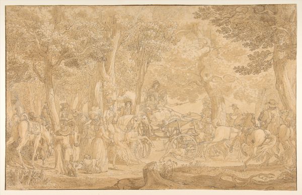 Gerard Melder created this delicate drawing, “Saters door nimfen gekastijd”, sometime between the late 17th and early 18th century. Made with pen and grey ink, it shows a mythological scene. In the composition, the figures become entangled in a power struggle that reflects tensions of gender and class. Nymphs, who are female nature deities, are shown dominating satyrs, creatures often associated with male virility and the lower classes. The scene can be interpreted as a commentary on social hierarchies and gender roles during Melder’s time. There is a palpable sense of energy, as the nymphs wield their power, capturing the satyrs. The traditional representation of nymphs as passive and submissive is challenged, as they become active agents of control. The drawing can also be seen as a reflection on societal anxieties surrounding female power. Through its depiction of mythological figures, this work prompts questions about how art shapes, and reflects societal values.