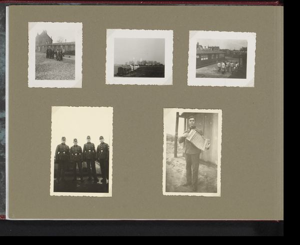Berti Hoppe’s photo album page shows us several images of Herman Besselaar and his parents in a set of gelatin silver prints. What's interesting to me is how Hoppe plays with arrangement to suggest a narrative. The tonal range is all about soft greys and muted blacks. The careful placement and the creamy surface of the gelatin silver gives each photo its own little atmosphere. Take the portrait where the family is grouped together. The way the light falls softly across their faces, creating subtle shadows, suggests a kind of gentle, intimate moment. It's like Hoppe is saying, “Here’s a slice of life, caught in the act of being lived.” Think about how painters like Richter used photography as source material, turning personal snapshots into something more abstract and universal. It makes you wonder about the stories these pictures hold and how much of that story we can ever really know.
