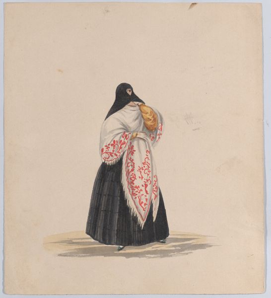 Francisco Fierro rendered this monk from the order of St. Francis in watercolor on paper in 19th-century Peru. The monk's dark habit and tonsured head are more than mere costume; they represent a deep commitment to faith and a renunciation of worldly vanity. Consider how this image echoes, yet diverges, from depictions of religious figures throughout history. Think of the Byzantine mosaics, where saints in golden robes project divine authority, or the somber, austere portraits of Protestant reformers. The monk's simple attire speaks volumes about his humility and devotion. The image resonates with a yearning for spiritual purity, echoing through centuries in different cultural forms. Observe the figure viewed from behind. This pose evokes a sense of mystery, inviting us to ponder the monk’s path and his inner world. It's a simple yet potent composition that engages our subconscious, reminding us of the eternal human quest for meaning and connection with the divine. This quest, depicted here, continues its cycle through time, resurfacing in new forms and contexts.
