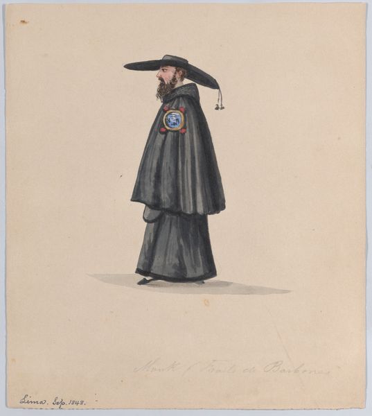 A monk from the order of St Francis viewed from behind, from a group of drawings depicting Peruvian dress 1843 - 1853