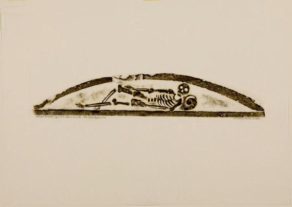 Editor: This is Ann Parker's print "Thomas Nichols, Wakefield, Massachusetts, 1765." It's somber but also strangely decorative, and the inscription, "Arise ye dead," is so prominent. What strikes you most about this piece? Curator: For me, it’s the labor embedded in its creation. Think of the physical act of carving the block, the materials used, the repetitive motions. This print becomes a record of that physical and social process of production. Editor: So you see the making of the print as important as its imagery? Curator: Absolutely. It makes you consider its broader social context: who was Parker, what was her access to materials and training? The "arise ye dead" takes on a new weight when considering the hands that made it. Editor: I never thought of it that way, how the process itself infuses the work with meaning. Thanks!