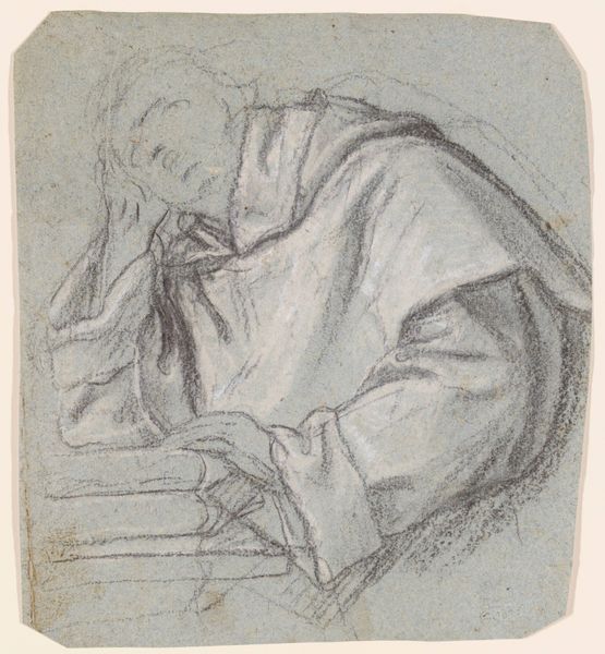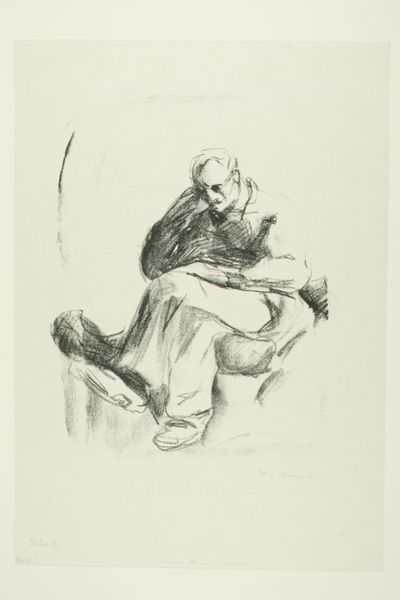 Max Klinger created "The Chronicler" using graphite and white chalk on brownish paper. The figure is hunched over their work, a study in concentration. The neutral tones evoke a sense of quiet contemplation. The drawing employs a limited palette. The artist plays with light and shadow to define the form. Klinger uses stark contrasts to highlight the drapery, creating a play of textures that draws the eye. The figure’s posture is not just physical; it is psychological. The downward gaze suggests introspection and a commitment to the task at hand. Klinger’s decision to focus on this solitary figure suggests a broader commentary on the role of the artist. It invites reflection on the nature of documentation and the subjective act of recording history. The simplicity of the medium underscores the complexity of the subject. The drawing prompts us to consider what it means to observe, interpret, and preserve moments in time.