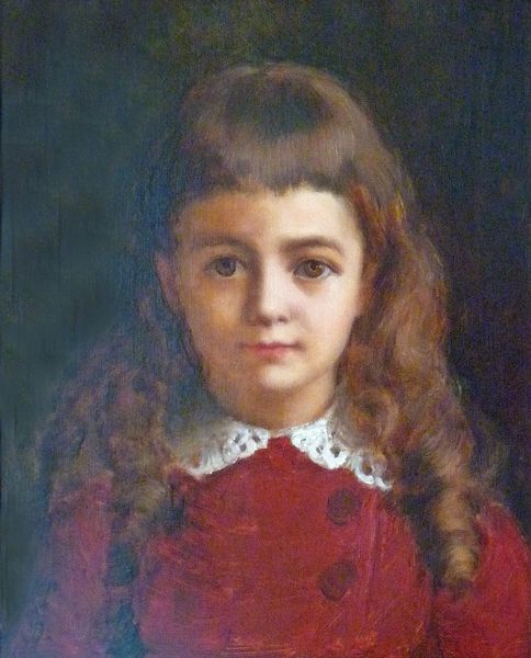 Albrecht Anker painted this portrait of Emilie Weiss using oil on canvas. This was a time when painting was considered a highly skilled and valued craft. The smooth texture and subtle gradations of color are achieved through a process called glazing, where thin layers of paint are applied on top of each other. This was a meticulous, time-consuming process, requiring years of training and a deep understanding of the materials, and implying significant labor time from the artist. The choice of materials, the red backdrop, and the subject's clothing also speak to the social context. The dress, probably handmade, with its delicate lace trim, hints at the subject’s family's economic status and the labor of women in both creating and maintaining such garments. Even the jewelry hints at emerging access to consumer goods. By considering the materials, the making process, and the social context, we can appreciate this portrait as not just a likeness, but as a cultural object embedded with the values and realities of its time.