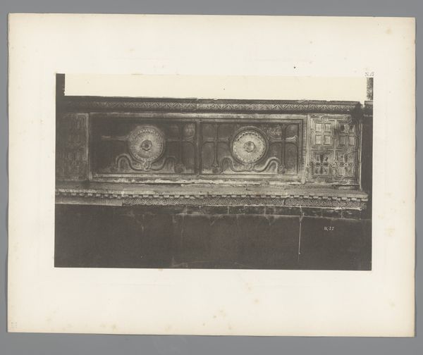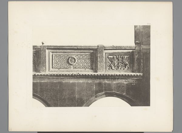 Carl Heinrich Jacobi captured this detail of San Marco in Venice using photography in the 19th century. The photograph’s composition is structured by a stark contrast between light and shadow, dividing the architecture. Jacobi frames carved stone panels, each featuring distinct religious symbols. The composition, with its horizontal emphasis and division into defined sections, mirrors structuralist principles of order and classification. The formal structure is immediately apparent, but it also invites us to consider the deeper semiotic implications of these signs. How do these symbols function within the architectural and cultural context of Venice? Notice how the interplay of light and shadow softens the rigid geometry, creating a dynamic tension. This photograph isn't simply a record, but an interpretation. The very act of framing these details elevates them, prompting us to decode the underlying structures of meaning within a historical and aesthetic framework.
