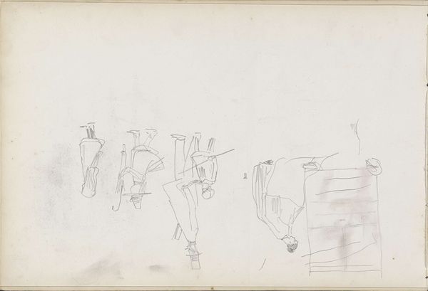 Editor: So this is Vilhelm Lundstrom's "Studieblad med kubistisk komposition," made between 1916 and 1919 using pencil and watercolor. It's a fascinating piece, a drawing with these soft washes of color forming abstract shapes... What strikes me most is the sparseness. How should we interpret it? Curator: What appears sparse to modern eyes may have been densely symbolic in its time. Look closely; can you see how geometric forms create echoes of objects – perhaps a vase, maybe even fragmented figures? Editor: I see those shapes. It feels almost like looking for figures in clouds… Is that what you mean by echoes? Curator: Exactly. Think about the psychological weight of fragmentation during and after World War One. Cubism wasn't just about breaking down forms; it was mirroring a broken world. The choice of muted watercolors, rather than bold oils, also speaks volumes. What do these lighter hues communicate? Editor: A sense of fragility? Impermanence? As though these forms might dissolve any moment. Curator: Precisely. Lundstrom uses the symbolic language of Cubism, and subverts traditional mediums, embedding trauma and memory in these seemingly simple shapes. These echoes allow for cultural memory. How does that change your initial read of the work? Editor: It deepens it. It's no longer just a formal exercise, but a meditation on loss and a visual reflection of collective anxiety. Curator: Indeed, and understanding this symbolic language enriches our viewing experience beyond aesthetics. We learn something about our past, ourselves and collective cultural experiences. Editor: That’s incredible; thank you for sharing those perspectives. It really brings a new layer of understanding to this work.