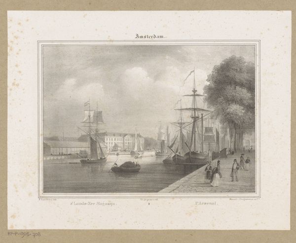 Editor: Here we have "View of Amsterdam from the IJ" made in 1855, it’s a print made by John Charles Varrall. The detail is really striking, it almost feels like looking at a photograph from that time! I’m curious, what stands out to you the most in this cityscape? Curator: You know, I am drawn in by how it feels so still, almost hushed. The boats glide silently on the water and the city rests peacefully on the horizon. Imagine yourself standing there, feeling the faint mist on your face... Doesn’t it feel like stepping into a memory, like looking into a snow globe? Varrall, through this engraving, isn't just showing us Amsterdam; he's handing us a feeling, an atmosphere. What details specifically catch *your* eye? Editor: Well, all the boats! Different shapes, different sizes... all those tiny people. It makes me wonder what they were doing. What was life like then? Curator: Precisely! Consider the Dutch Golden Age—its legacy would’ve still echoed in daily life. This print offers a glimpse beyond grand histories; imagine merchants planning trade routes, families setting off on leisurely sails... each vessel with its own story bobbing on the waves. Don't you think that the “realism” of this is a romanticisation of the hard work involved? Editor: That's so interesting! I was focusing on the picturesque scene, but I see what you mean about romanticising work. I hadn’t thought of that before. Curator: Art has a cheeky way of holding up a mirror and whispering secrets, doesn’t it? Every viewing offers a new tale to uncover! I often find myself seeing something totally new each time! Editor: Definitely. I'll never look at a cityscape quite the same way again. So much more than just buildings and water, right? Curator: Exactly! It’s a captured moment, still whispering secrets from the past if you really listen.