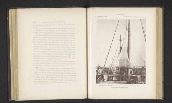 Curator: Let’s consider this gelatin-silver print, “Gezicht op een sleepnet op het dek van de George S. Blake,” taken before 1880. It's striking, isn't it? Editor: It is. The crisp detail shows what I think is a fishing net dominating the foreground, a ship’s deck bustling with equipment. It feels...almost staged, in a way, despite the ruggedness of the scene. What's your interpretation? Curator: The staged quality is something I find significant, given the period. We should view this not just as a documentary photograph, but as a constructed narrative. It's easy to romanticize 19th-century fishing, yet this image obscures the backbreaking labor and precarious economic realities faced by those aboard. Think about how access to such a career would be deeply intertwined with the person's race and origin at the time, too. Does this photograph tell us that story? Or does it perpetuate a myth of rugged individualism? Editor: So, you're saying it presents a sanitized version of maritime life? How can we unpack that further through this image? Curator: Consider what isn't shown. Are the fishermen visible? What perspectives are being centered? Examining who has the power to represent whom, and for what purpose, reveals power dynamics within the history of maritime labor and representation. Is it meant for other sailors or perhaps land dwellers interested in seafaring? Editor: That really changes how I see it. The omission of the actual labor is pretty telling when considering potential exploitations of this industry. Curator: Precisely! By interrogating images like this, we uncover the complex, often uncomfortable, truths hidden beneath the surface. We shouldn't accept this as simple history. Editor: It shows how photographs can be both a record and a carefully constructed argument. Curator: Indeed! The past is anything but straightforward. Recognizing who controls its narratives allows us a clearer view of our present.
