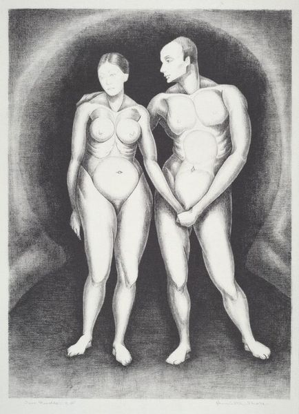 Editor: Here we have "Two Musicians," a charcoal drawing attributed to Edward Burne-Jones. The figures have a gentle quality despite their striking forms. I'm drawn to the soft texture achieved with the charcoal. What do you see in this piece, particularly in the context of Burne-Jones and the Pre-Raphaelites? Curator: Beyond the immediately visible Pre-Raphaelite aesthetic—the figuration and emphasis on beauty—I see Burne-Jones grappling with notions of idealised forms and the male gaze. The female nude was often used to propagate male fantasies, even in the Pre-Raphaelite movement. The ambiguous expressions of the figures makes me ask, is this about the pure expression of beauty, or is there a subtly critical element regarding the representation of women? Does their ambiguous relationship to one another—a supportive embrace or something else— disrupt more conventional readings? Editor: That's a great point. I was focused on the visual harmony, but you're right, the lack of facial definition gives it an eerie sense. Do you think that absence is intentional? Curator: Absolutely. Considering Burne-Jones's engagement with Symbolism, which prioritised conveying ideas over accurate representation, those undefined features could symbolise the dehumanisation that can occur when women are placed on a pedestal. Is beauty truly liberating, or does it simply create another form of constraint? Moreover, by rendering the figures androgynous, what questions of gender or sexuality are possibly evoked? Editor: It really makes you think about who this art was *for* and *what* messages it sends. I definitely see the social critique now that I didn't pick up on before. Thanks for opening my eyes. Curator: And thank you for yours. It's crucial to examine historical works with modern critical frameworks and ask what roles these aesthetic choices have in shaping identity.
