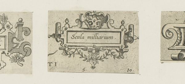 This is an engraving of a small cartouche with a mask and two butterflies, made by an anonymous artist. The cartouche, rendered in precise lines, presents a study in contrasts. Its rectangular frame, inscribed with the words "Cum Privilegio," is softened by ornamental flourishes. Note the symmetrical arrangement of elements, with a mask-like face at the top. This symmetrical structure provides a sense of order. The choice of ornamentation, including the butterflies, introduces a layer of complexity. Butterflies are traditionally symbols of transformation and freedom. This visual language allows for the piece to engage with ideas such as privilege, transformation, and the boundaries between nature and culture. In essence, this small cartouche operates within a structural framework, yet its symbolic details resist a singular, fixed interpretation. It encourages us to consider the interplay between formal constraints and symbolic expression.