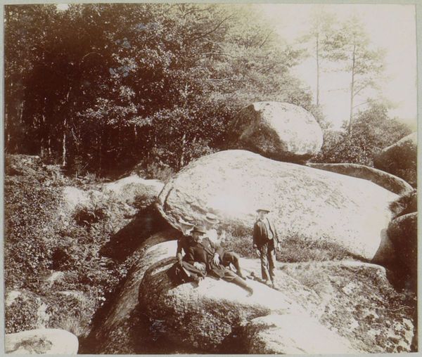 Curator: This haunting gelatin silver print, dating back to 1856, is titled "[Dead Stag]". It was captured by Horatio Ross and now resides at the Metropolitan Museum of Art. What strikes you first about it? Editor: Gut-wrenching, isn't it? The sheer stillness, like a tableau of defeat, that stag sprawled on the rocks... it feels heavy. It just makes me want to whisper. The gray tones amplify that melancholic feel. Curator: Absolutely. The image is rich with the symbolism of Romanticism, yet it presents a stark, almost journalistic realism. The death of the stag becomes a microcosm of the conflict between nature and humanity. Hunting at the time, particularly in the Scottish Highlands where Ross lived, was tied up with class, power, and land ownership. Editor: Oh, you're hitting on something for sure...There's this immediate, graphic impact, but also an invitation to contemplate this stag's final moment in the wild. Look at how the stream just flows indifferently nearby—almost heartless but probably closer to something more like, well, balance. And that little rustic bridge, maybe put there by humans. It almost taunts us as proof of intrusion. It looks so picturesque and harmless but contributes to a context of disruption. Curator: Exactly. The stag as a symbol of untamed wilderness is a recurrent theme, frequently used to stir sentiments concerning themes such as nationalism, liberty, and loss, even at a time when Highland identity was romanticized yet concurrently suppressed. The stag, positioned beside that bridge, becomes a potent visual metaphor for the environmental and social repercussions of progress. Editor: Yeah, thinking about that romanticisation, it almost feels… I don’t know, performative? This stag is robbed not only of his life, but then is cast as a figure in someone else’s ideal landscape, someone who feels justified to bring something so inherently wild, still into his collection. I suppose that tension is partly where its artistic charge derives. I find that a fascinating, troubling space to dwell. Curator: Well, your visceral response highlights the enduring potency of this photograph, encouraging viewers to engage with these complex layers of meaning. Editor: Indeed. You know, even as we’ve intellectualised it, there's this primal thing happening…that creature, now just stone cold, staring out in oblivion, that is the haunting heart of it for me.