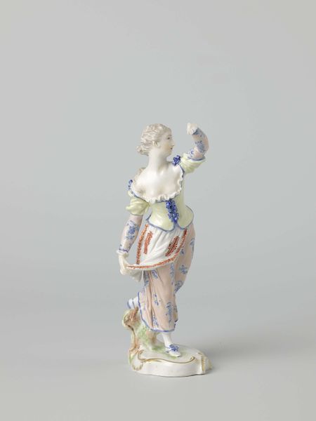 "Venus and Mercury" was created by Wilhelm Caspar Wegely in the 18th century, during the height of the Rococo movement. Rococo was a style known for its ornamentation and asymmetry, which was a visual expression of the aristocratic class’s desire for beauty. Wegely’s porcelain figurine depicts Venus, the goddess of love, alongside Mercury, the messenger of the gods. Their divine status reflects the fascination with classical mythology at the time. The artist's choice to represent Venus partially nude adheres to traditional representations while hinting at a more sensual narrative. Mercury's presence introduces themes of communication and intellect. The delicate floral patterns adorning Venus’s drapery and the overall pastel palette, enhance the figurine's elegance, characteristic of the Rococo era. This piece not only embodies the aesthetic preferences of its time but also speaks to the enduring human fascination with love, beauty, and the divine.