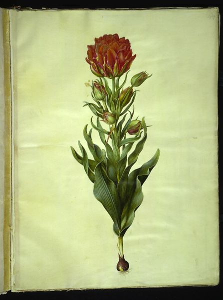 Hans Simon Holtzbecker made this study of an orange lily, Lilium bulbiferum, using watercolour on paper. The work is now held in the Statens Museum for Kunst. Holtzbecker, active in seventeenth-century Copenhagen, worked as an artist for the Danish royal family. This botanical study, along with others he produced, was part of a comprehensive illustrated codex of flowers from the royal gardens. At the time, Denmark was a major European power, and royal patronage of the arts and sciences was an important means of displaying wealth and power. Holtzbecker’s detailed and accurate illustrations served both aesthetic and scientific purposes, documenting the exotic plants cultivated in the royal gardens. To fully understand this image and its context, we need to look at archival records about the artist’s patrons, study botanical treatises, and consider the history of collecting and display in early modern Europe. Art like this reminds us that its creation and meaning are always shaped by the society and institutions that support it.