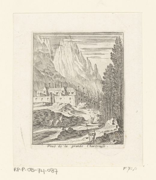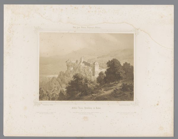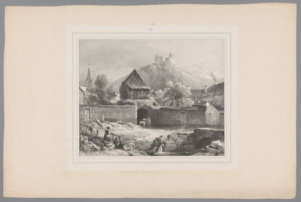 Lambert Joseph Leopold Freiherr von Babo created this landscape with a bridge over a river using etching techniques, resulting in an intricate composition of light and shadow. The structural elements, such as the linear bridge spanning the river and the vertically oriented church spire, create a balanced yet dynamic interplay. The etching's formal qualities draw us into a semiotic reading of the landscape. Note how the artist uses the bridge as a central motif, an architectural structure which not only connects physical spaces but also implies a connection between different realms of experience, similar to how language connects different meanings. The detailed rendering of natural forms, contrasted with the precise lines of the man-made structures, creates a visual dialogue between nature and culture. Babo's strategic use of light and dark evokes a sense of depth and texture, inviting you to consider the broader philosophical implications of humanity's place within the natural order. The print invites ongoing interpretation, where our understanding can evolve with each viewing.