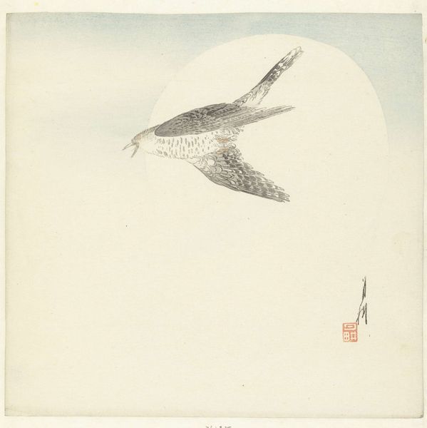 Editor: Here we have Dame Elisabeth Frink's "Osprey." It's difficult to put my finger on the medium, but the texture is quite tactile, especially in the bird's plumage. What strikes you about it? Curator: Consider the post-war context. Frink’s work often utilized industrial materials, highlighting the means of production. Is this a print? How does the reproduction process inform the reading of the animal subject? Is it about abundance or scarcity? Editor: That's a really interesting point. I hadn't considered the implications of it being a print and how that connects to mass production. Curator: Exactly. The materiality challenges traditional notions of the unique art object, questioning its value and accessibility. What does an osprey signify when mass-produced? Editor: I'll definitely look at Frink's work in a new light now! Curator: Indeed, art's power lies not just in its image but also in the story of its making.