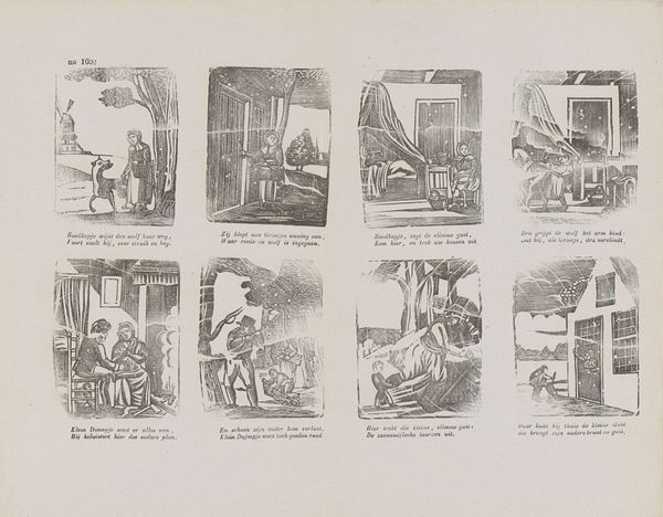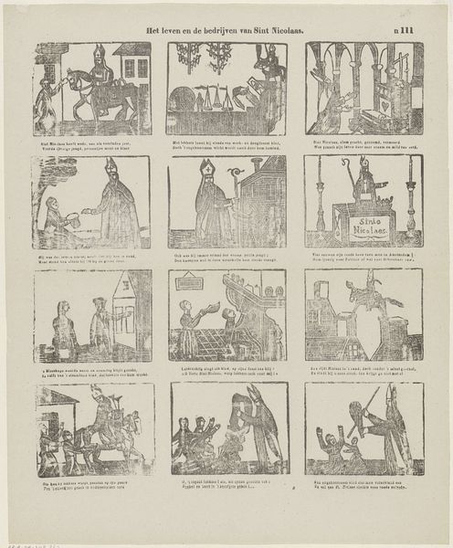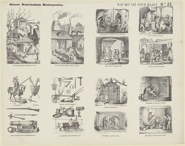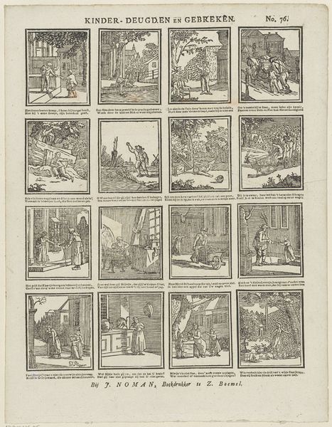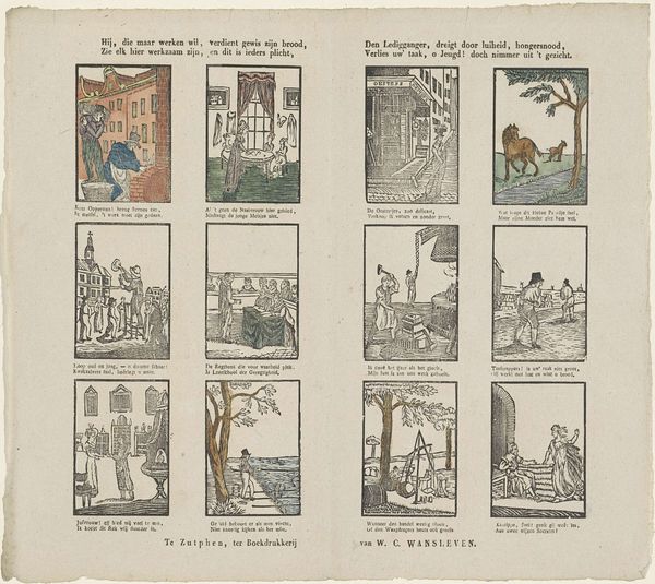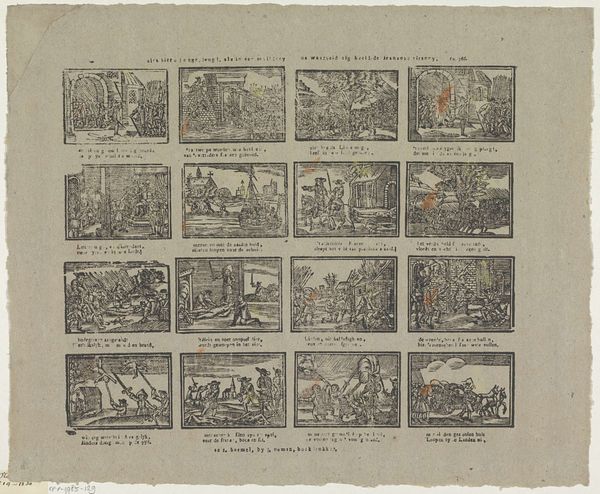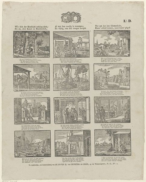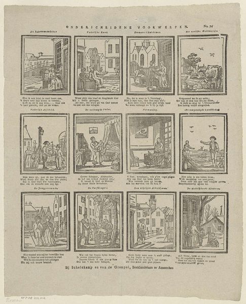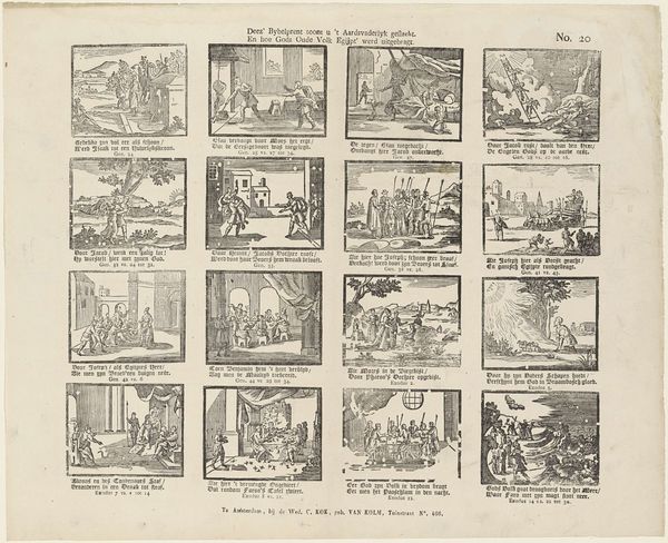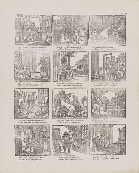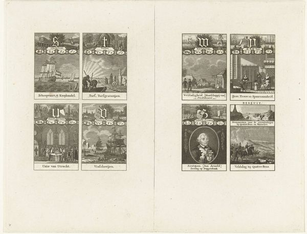 This print, made by Alexander Cranendoncq in the 19th century, presents a series of vignettes that celebrate the lives of famous Dutch men. The composition is structured as a grid, organizing these scenes into a collective narrative about Dutch heroism. The linearity and precision of the engravings emphasize clarity and order. Each scene is carefully delineated, creating a sense of contained action. Notice how light and shadow are deployed not for atmospheric effect, but to define form and space. This approach reflects a formalist concern with structure. The print invites us to consider how collective identity is constructed through visual representation. The arrangement of images and text creates a cohesive whole, reinforcing ideas about Dutch history and identity. It speaks to how graphic form can articulate cultural values.