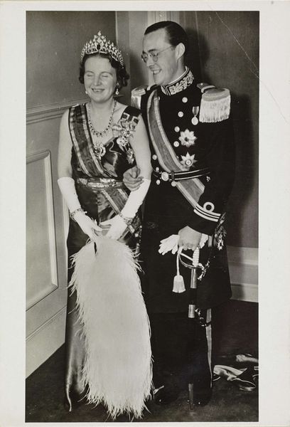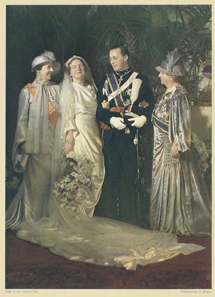 This is a photograph of Queen Wilhelmina of the Netherlands and Prince Hendrik of Mecklenburg-Schwerin, and it was made by Guy de Coral & Co. Looking at the texture of the image, it reminds me of an old photocopy, with these granular flecks that catch the light. The dress and the wall behind them create this dance of repeating patterns. It almost vibrates. I love the way the light falls on the Queen's dress and how the details are both visible and obscured. If you look closely at the bottom of the photograph, you can see how this plays out. The dress melts into the floor, and they almost become one. Thinking about other artists, this piece makes me think of Gerhard Richter and his blurred photographs, or even Vija Celmins and her drawings of the night sky. Both artists use similar techniques to create a sense of depth and mystery, inviting us to get lost in the details, and to appreciate art as an ongoing conversation across time.