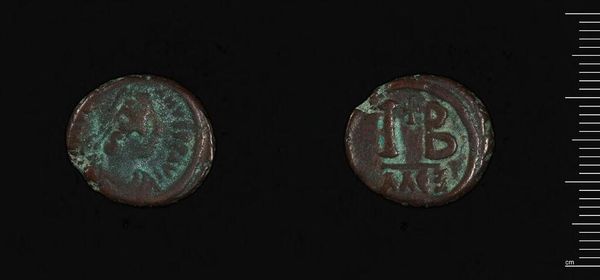 Editor: Here we have a coin referred to as of Antoninus Pius. Its materiality really strikes me, the way the bronze has aged. What do you see in it? Curator: Note the circularity—the bounded form. We see the interplay between the incised text and the effigy, balanced yet distinct. Do you observe the patination, how it articulates the surface? Editor: Yes, the green almost obscures the original design, softening the sharp lines. It adds a layer of abstraction, doesn't it? Curator: Precisely! Consider the relationship between decay and form. The corrosion paradoxically enhances our awareness of the coin's intrinsic structure. Editor: So, it's not just about what's depicted, but how the material itself contributes to the artwork's meaning. Fascinating! Curator: Indeed. The materiality and form are inseparable.