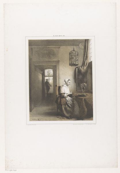 Editor: This is "Oosterse priester voor een stoep," or "Oriental Priest Before a Sidewalk," an 1889 etching by Charles Berckmans. I'm struck by its subtle contrasts; it feels like a quiet, staged scene. What are your initial thoughts about the socio-cultural implications in play here? Curator: Indeed, it's a fascinating piece within the context of 19th-century Orientalism. Consider how the artist positions the priest – not within a grand, bustling marketplace, but in a subdued, almost theatrical setting. Doesn't that choice already speak volumes about the European gaze and the "staging" of the Orient for Western consumption? Editor: That makes sense. It's like Berckmans is curating a particular image, even if unintentionally. The realism mixed with impressionistic techniques feels… conflicted. How might the institutions displaying such art have shaped its impact? Curator: Museums and galleries became crucial sites for constructing and reinforcing narratives about the "Orient." Exhibiting this etching within such spaces solidified Western perceptions, framing the depicted culture through a lens of exoticism and often, colonial power dynamics. Did Berckmans challenge or reinforce those power structures, and how would audiences have perceived it in his time versus today? Editor: That's a crucial question! I'm now seeing this piece not just as a portrait but as a social document. The act of observing, representing, and displaying these images definitely carried political weight. Curator: Exactly! The politics of imagery are always present. Consider too how the relative accessibility of prints versus painting meant that pieces like this circulated much more widely, embedding their visual tropes into popular culture. Editor: This conversation has totally changed how I perceive this etching. It’s no longer just a scene; it’s a lens through which we can examine the complexities of cultural representation and the power dynamics embedded within it. Curator: Precisely. And remember, understanding the past is essential for navigating the visual landscape of our present.