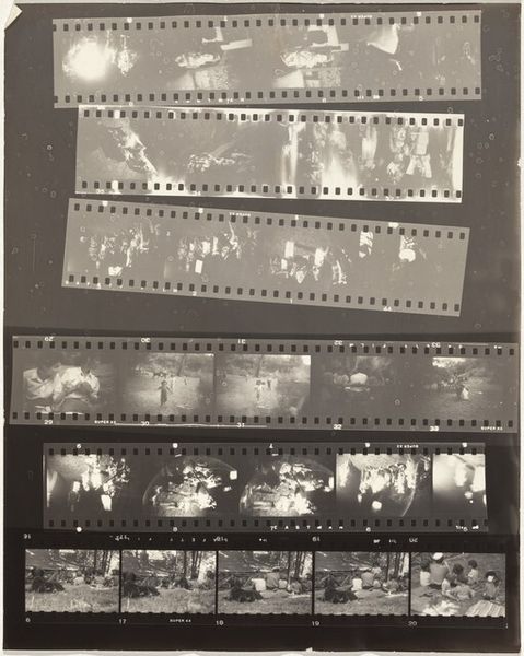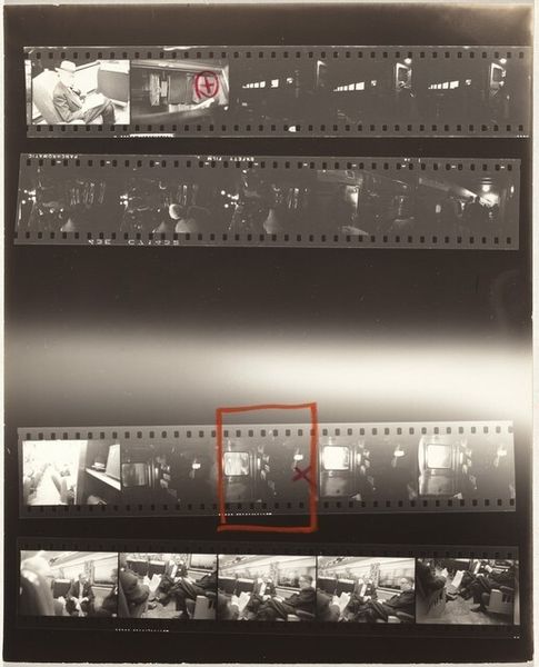 Robert Frank made this contact sheet, Guggenheim 385--Gallup, New Mexico, using gelatin silver print. What strikes me is the way the film is arranged, like a storyboard of fleeting moments, all punctuated by the sprocket holes that give it rhythm and measure. The grainy, high-contrast black and white adds to the feeling that we are looking at something raw, unedited. The red grease pencil marks are so key; they are like a painter’s sketch marks, revealing Frank’s process of selection and framing, transforming the mundane into something poetic. Take the strip near the bottom, for instance, a series of diners in a booth, cropped so closely; it’s a study in gesture and intimacy, reminiscent of Nan Goldin’s images. It reminds me that photography, like painting, is about making choices, deciding what to show and what to leave out, and about creating a language that speaks in its own unique way.
