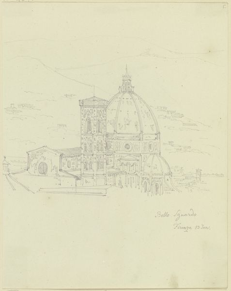 Friedrich Maximilian Hessemer sketched S. Maria del Fiore in Florence from a rooftop, using pencil. This rendering provides us with more than an architectural study; it invites us to consider how the shifting perspectives of the 19th century shaped the experience of urban life. The choice to depict the cathedral from above is evocative. It suggests a gaze that is both intimate and detached. The rooftop vantage point hints at the changing social dynamics of the time, when travel became more accessible. The architectural precision and delicate rendering are tinged with the emotion of being a traveler, looking in at Florence. The drawing captures a moment in time, where the personal and the monumental intersect, revealing how individuals engage with history and place.