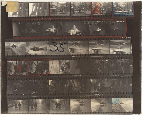 Robert Frank created this photographic work, "Congressional X," using gelatin silver on paper. Its structure is immediately striking. The composition is divided into rows of film strips, each a sequence of potential images, some marked with a bold "X," a kind of brutal editorial decision visible to the viewer. The grainy, high-contrast materiality gives each frame a documentary feel, yet the selection process, laid bare, reminds us that even the most seemingly objective photograph is the result of choices, inclusions, and exclusions. This arrangement functions as a commentary on the nature of representation itself. The "X" marks destabilize the images, suggesting a rejection or perhaps a hidden narrative. The artist invites us to consider not just the images but the very process of seeing and deciding what is worth seeing. It is a layered examination of image-making and a reflection on how meaning is constructed through selection and negation.