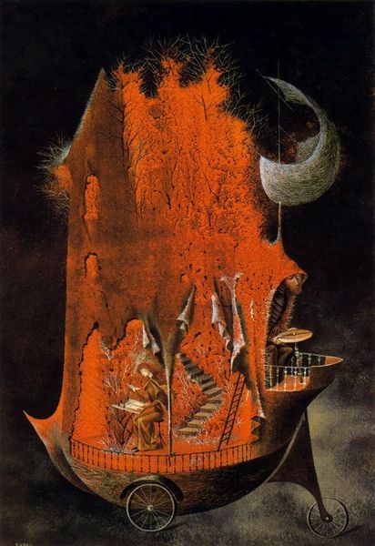 This untitled painting, by Zdzislaw Beksinski, presents an unsettling vision that speaks to the anxieties of post-war Poland. The nightmarish imagery - a gaunt figure on a high structure being watched from above - is typical of Beksinski’s dystopian surrealism. Beksinski came of age during the height of Soviet influence in Poland. His artistic vision was influenced by the climate of oppression and control that defined the era. Beksinski's personal tragedies, including the death of his wife and suicide of his son, further deepened his dark outlook, which is reflected in his art. His lack of a clear narrative might be interpreted as a form of silent protest against the controlling narratives of the communist regime. The fact that Beksinski refused to title his works may reflect his desire to allow viewers to interpret them freely. As historians, we look at biographical details and social context of an artwork to understand its emotional power.
