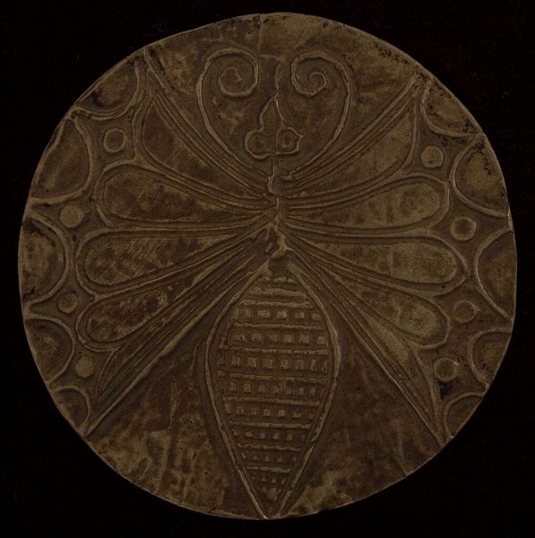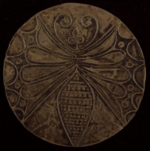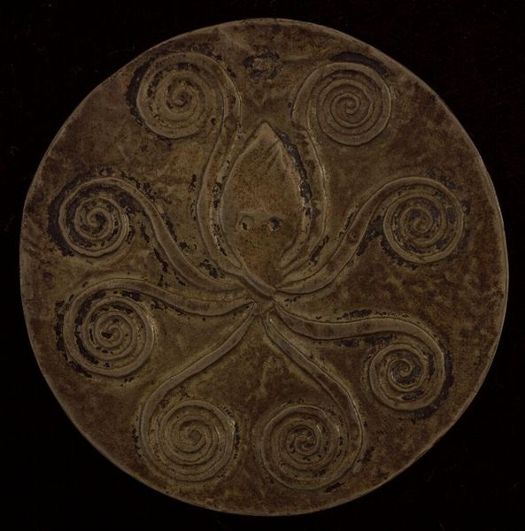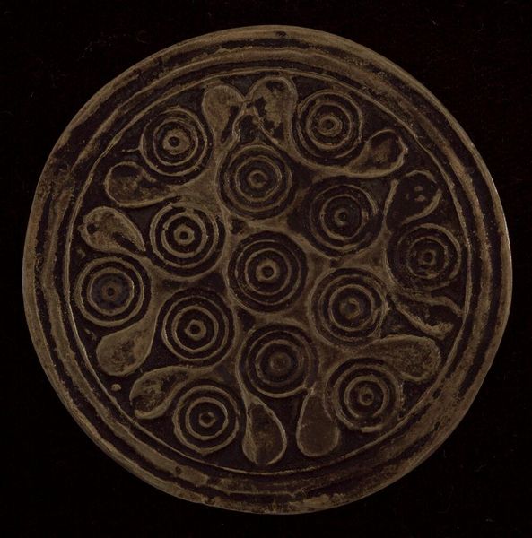 Curator: Before us is a reproduction of a gold Mycenaean disc, possibly by Emile Gilliéron or his son. Note its modest size: just 5.5 centimeters in diameter. Editor: The piece certainly exudes a meditative aura. The concentric circles suggest a cosmic order, almost like mandalas representing the universe. Curator: Indeed. The formal arrangement of these swirling motifs establishes a rhythmic visual echo. The eye travels from one form to another in an orchestrated dance. Editor: Those teardrop shapes connecting the circles, though—they suggest tears or seeds. It evokes themes of sorrow and rebirth intertwined. Curator: The subtle variations in depth and texture across the surface add an extra layer of visual interest, enhancing the interplay of light and shadow. Editor: A fitting echo of cyclical patterns – the repetition of life in the face of mortality, rendered in gold. Curator: An insightful perspective. A reminder of the enduring power of simple forms. Editor: Precisely. A potent testament to the continuity of human experience across millennia.