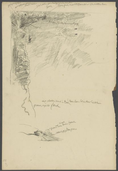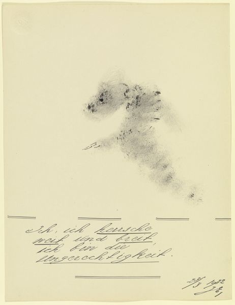 Editor: Here we have "16358 ("Was da heute wird beachtet ...")", a 1932 drawing in ink, pastel, gouache and other media on paper by John Elsas, housed in the Städel Museum. It strikes me as unsettling. What do you see in this piece? Curator: I see an invocation of cultural memory. This ethereal figure, emerging as if from a ghostly spring, possesses a symbolic charge, particularly given its creation in 1932. Notice the inscription below: it speaks of the present being observed by the future, and of things one doesn't want to see rising again. Editor: So, you’re suggesting it's not just a simple portrait but something deeper? Curator: Exactly. The artist utilizes figuration in service of narrative. This wispy form rising reminds me of the anxieties swirling in Germany at the time, just before the Nazi rise to power. The artist uses visual symbols rooted in German cultural anxieties to suggest ideas about historical reckoning. It seems like Elsas suggests something repressed is bound to reappear. What feeling do you get from the colour palette? Editor: Now that you mention it, the muted pink and grey do create a sense of unease. I hadn’t connected it so directly to the socio-political context, but it's amazing how such simple forms and colors can convey so much. Curator: Indeed. And even the act of drawing, as a less 'finished' medium, perhaps symbolizes a world still in formation, haunted by the past, uncertain of its future. Do you think that knowledge of the inscription changes your perception? Editor: Absolutely. It adds a layer of meaning, transforming a somewhat abstract figure into a commentary on the looming future. Thank you! Curator: My pleasure. I’m so glad that thinking through cultural symbols added to your understanding.