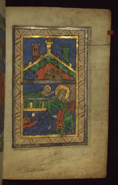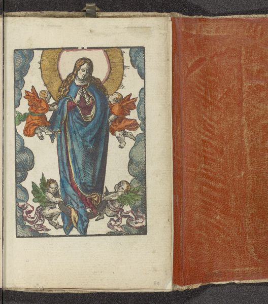 Editor: Here we have "The Seven Sorrows of Mary" by the Monogrammist S, created sometime between 1516 and 1545. It’s tempera on what looks like a page from a book. It's so intricate and contained, but the emotions portrayed seem so big! What do you see when you look at this piece? Curator: This small panel is bursting with symbolic power. It’s almost like a meditation on grief, wouldn’t you agree? Editor: Definitely! The circular vignettes showing the key sorrows surrounding the central image of Mary holding Jesus really bring that point home. Curator: Exactly. These sorrows weren’t just about individual moments of pain, but a chain of events with deep spiritual weight. Each sorrow represents a specific event—the prophecy of Simeon, the flight into Egypt, the loss of Jesus in the temple, meeting Jesus on the way to Calvary, the Crucifixion, the removal of Jesus from the cross, and the burial of Christ. Notice how each little scene contains gestures and objects—a sword, nails, a donkey, cloths to dry tears. All powerful memory cues. Editor: So they would instantly conjure those stories and their deeper meanings for the viewer? Curator: Precisely! These weren’t just pictures; they were prompts. They reminded viewers not only of Mary’s suffering, but also the potential for redemption through faith. They act as tangible anchors for communal memory. What else stands out to you? Editor: Well, the arrangement feels almost like a wheel, spinning us through these pivotal moments of Mary’s grief. Curator: And think of the emotional labour involved in producing such miniatures. Each element so finely rendered, intended to elicit not just observation, but deep empathy. How does it change your initial view now? Editor: I’m definitely seeing how dense and multifaceted this piece is – a single image designed to unfold into layers of symbolic and narrative meaning! Curator: Indeed, and a beautiful example of how images operate within our collective memory.