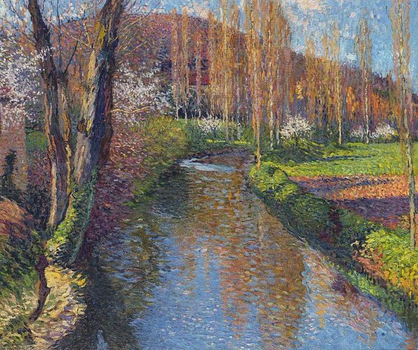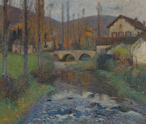 Henri Martin painted 'The Vert and the first houses of Labastide' employing an interesting technique to capture the French countryside. Martin was working in France at a time of intense debate about the role of the artist in society, with the rise of impressionism and other avant-garde movements. The pointillist style seen here, where small distinct points of color are applied in patterns to form an image, was considered radical. It represents a rejection of traditional academic painting styles, aligning Martin with artists who sought to challenge the established norms of the art world. This image encapsulates the tension between tradition and modernity that defined French society at the turn of the century. For the historian, understanding Martin's choice of subject, style, and his place within the artistic institutions of his time enriches our understanding of this work and its significance. We can explore exhibition records, critical reviews, and biographical details to deepen our understanding.
