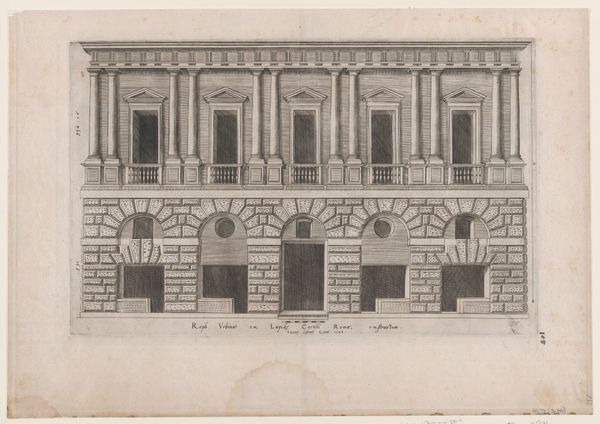 Giacomo Quarenghi rendered this project for the Riding-School of the Horse Guards in Saint Petersburg as a pen and watercolor wash on paper. Here, symmetry reigns supreme. The facade is rigidly organized around a central axis, flanked by identical bays. Note how the columns are not merely decorative but structural, defining the spatial rhythm. Quarenghi uses line and wash to articulate form, emphasizing the interplay of light and shadow across the building's surface. This architectural elevation functions as a sign, a carefully constructed representation of power and order. The neoclassical style evokes a sense of rationality and control, reflecting the Enlightenment values of Quarenghi's time. But consider how this idealized form flattens lived experience, reducing it to a set of formal relations. The building's facade becomes a mask, concealing the complexities within. Ultimately, Quarenghi's elevation invites us to question the relationship between representation and reality, form and function, ideology and lived space.