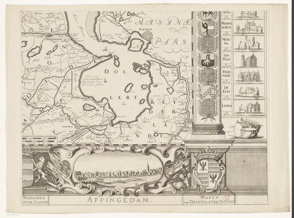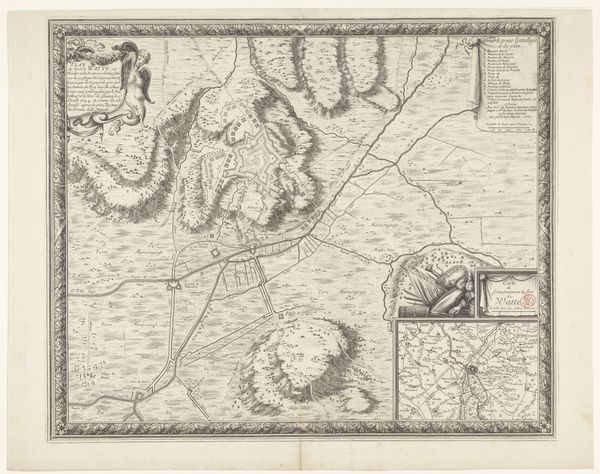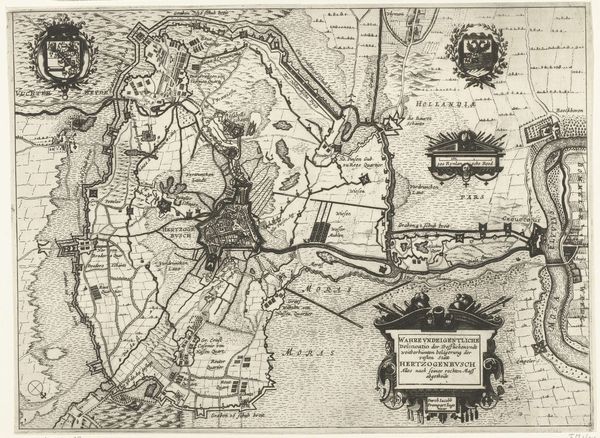 Claes Jansz. Visscher created this large map of the siege of Den Bosch in 1629 using engraving. The visual field is complex, dominated by intricate lines mapping fortifications, troop movements, and topographical details. The monochromatic palette focuses attention on the structural forms of the siege. The map's detailed rendering serves a dual purpose, both to document and to glorify military strategy. The siege is not merely represented but constructed as a legible, rational endeavor. Visscher uses semiotic codes of cartography and military symbolism to convey power and order. Consider how the seemingly objective lines of the map also function ideologically. They carve up space, define boundaries, and assert control, reflecting the period's broader concerns with territory and governance. The very act of mapping is an assertion of knowledge and domination. The ordered lines, therefore, serve not just a practical function but also a philosophical one, underscoring the power of representation and its impact on our understanding of the world.