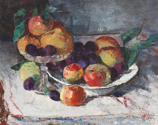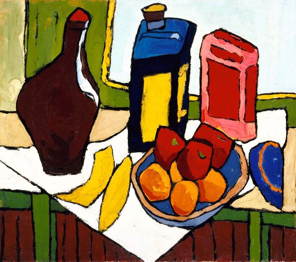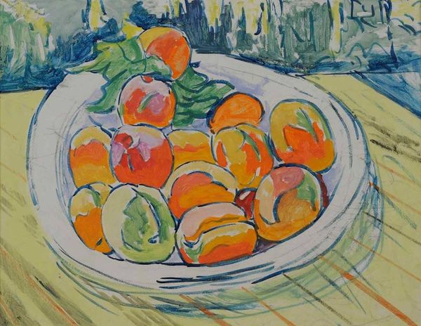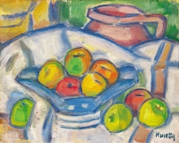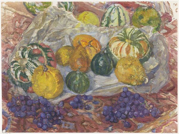 Marc Chagall made this still life of vegetables and fruit, we don’t know when, or what with, but it’s a feast for the eyes! I love how the colours seem to vibrate, almost like he's captured the very essence of summer. What strikes me is the real sense of touch in the painting. Look at the way the paint is applied so thickly, especially on the tomatoes, each brushstroke loaded with colour, giving them a real plumpness. And the textures! That checked surface beneath the food, with each stroke visible, it’s like a little abstract painting in itself. It's the kind of painting that makes you want to reach out and grab an aubergine, or maybe just run your fingers over the surface. You can see how Chagall has used the physicality of the paint to bring the scene to life. Chagall reminds me of Bonnard in a way, that same love of colour, but with Chagall it’s wilder, more unrestrained. It’s not about perfection or realism; it’s about feeling and memory, and that’s what makes it so compelling.