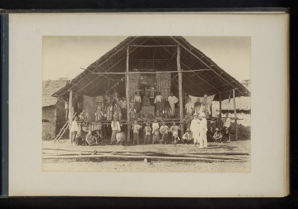 Curator: This photograph, "Groep contractarbeiders met opzichters op een binnenplaats op de Bindjai Estate, Sumatra" comes to us from around 1890-1900 and the studio of Heinrich Ernst & Co. Editor: It strikes me as deeply unsettling, this ordered formation of laborers. There is such a stillness and silence captured here, despite the large group, the picture has this grim sense of confinement within the courtyard walls, something ominous hangs in the air. Curator: Albumen prints like this one were commonly used for documentary purposes at the time. This photograph provides a look into the system of indentured servitude practiced on plantations in Sumatra. We can see rows of workers flanked by what I presume are the estate’s overseers. Editor: “Documentary purposes,” as if its neutral record could excuse the inherent power dynamics on display here. Look closer – observe who is standing versus who is kneeling or sitting. Who is dressed in light colors versus who is not. Every detail speaks of subjugation and exploitation. Curator: The stark contrast between the dark clothing and the lighter fabrics could be symbolic; maybe the different visual weight alludes to the laborers' reduced circumstances versus the seeming ease and authority of the colonial structure, an early form of propaganda or carefully constructed narrative, to imply order and civilized industry in these estates. Editor: Perhaps, or simply another way to reinforce racial and economic hierarchies through dress. Light clothing for those who avoid physical labor in this tropical heat, dark and worn clothes for those who break their backs. This image and others like it circulated in Europe and other colonies to enforce the belief of white man’s burden, justifying such treatment of non-European peoples and exploitation of foreign land. Curator: The repetitive architecture contributes too, suggesting that these people are just components to the business and not of intrinsic significance individually. This all feels disturbingly timeless. Editor: And now, even viewed from so far in the future, its meaning echoes down the corridors of contemporary power imbalances across the globe, asking to know, 'How much has really changed?' This photographic piece isn't simply a frozen picture, it’s the visual ancestor to some continuing human catastrophes, something of a potent ghost that lingers still.