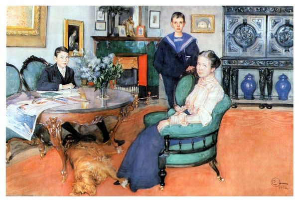 Norman Rockwell rendered "Visits a Country Doctor" with oil on canvas, meticulously building up layers of paint to achieve the textures and tones we see here. Rockwell was celebrated for his storytelling, using scenes from everyday life, yet he relied on extensive preparation. He would hire models, stage the scene, and take photographs, before beginning to paint. Rockwell was working in an era when commercial illustration was a thriving industry, and his art was intended for mass reproduction. The painting's smooth surface and realistic detail are well suited to print media. But beyond the surface realism, the painting also points to the world of work. The doctor’s disheveled desk, stacked high with papers, suggests the long hours and constant demands of his profession. The family’s presence speaks to the human connections at the heart of rural medical practice. Ultimately, "Visits a Country Doctor" offers a glimpse into a specific time and place, and encourages us to consider the value of skilled labor, personal relationships, and the stories behind everyday life.