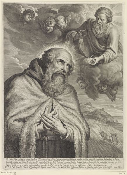 Curator: Here we have Ludwig von Siegen’s “Biddende kluizenaar,” created sometime between 1642 and 1680. It’s an engraving, a printmaking process that allows for a wide distribution of imagery, even then. What’s your initial impression? Editor: Austerity. Look at the deliberate use of hatching and cross-hatching! There’s such detail for the time in creating shadow, in a somber piece which seems inherently physical: stone, cloth, skin, and devotion as labor. Curator: Absolutely, and situating it within its historical context, we have to acknowledge that such austere portrayals of religious figures, particularly hermits, had profound political and spiritual resonance. Consider the turmoil of the era, the conflicts over religious authority. Editor: Yes, these materials and processes were labor-intensive, reflecting a hierarchical social structure and class divisions that artists had to navigate. How interesting to see a popular depiction using affordable means to democratize these otherwise inaccessible or sanctified lives! Curator: I am also wondering the cultural connotations of representing penitence, especially in the baroque style where we expect exuberant depictions. Here, we have the subdued portrayal that touches upon questions of social control and individual agency. Editor: Von Siegen had to have command over his burin and metal plate—he was able to exploit what some considered a "lower" or craft-related status to enter art circuits otherwise unavailable to the common man. It raises the status of work through reproducible image. Curator: Agreed, plus we shouldn’t overlook how this print is not merely representational; it is doing work in the world. It’s contributing to a discourse, perhaps offering a visual vocabulary for understanding devotion or challenging societal expectations. Editor: Thank you, I never expected to find so many fascinating things to ponder by closely examining the simple tools and process by which this artist conveyed such quiet desperation and, ultimately, devotion! Curator: A wonderful consideration of an artwork as historical object, labor, and reproducible. For me, reflecting on how artists like Von Siegen navigated personal belief with socio-political currents unveils much of his cultural values through craft.