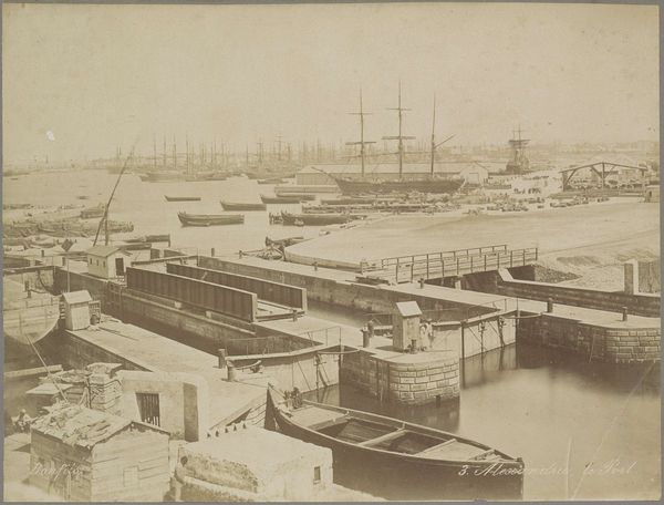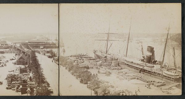 Andries Jager made this photograph of the jetties on the De Ruijterkade sometime in the late nineteenth century. It’s like a memory, isn't it? This faded sepia tone gives it such a sense of distance. I love how the surface isn't crisp; it's almost dreamy. Look closely at the details of the boats and buildings. There's a haziness that softens every line and shape, dissolving hard edges in favor of atmosphere. It reminds me of a Turner painting, the way he uses light to create a sense of mood and place. But instead of paint, we've got the chemical alchemy of early photography. Think of how Jager would have witnessed this scene, lugging his equipment down to capture this view. He might have loved how the light plays on the water and the bustling energy of the port. This photograph isn't just a record, it's a feeling, a moment suspended in time. It's like a whisper from the past.