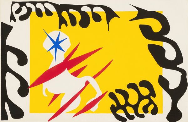 Editor: Here we have Henri Matisse's "L'enterrement de Pierrot," created in 1947, using mixed media and collage. I find the abstract geometric shapes really intriguing, but I'm not sure what to make of it as a whole. What do you see in this piece? Curator: The title is a fascinating point of entry. The funeral of Pierrot… Think of Pierrot as a recurring archetype – the sad clown, eternally lovelorn. This image is after all an archetypal representation of grief. Do you see the visual echoes of mourning rituals, the stylized procession, even the symbolic shedding of tears at the bottom? Editor: I see it now, a stylized carriage on top of teardrop shapes. It's somber but also…celebratory, somehow. Is that the fauvist influence shining through? Curator: Exactly. It's Fauvism, but it's also Matisse in his later years, using cut-outs. What do you make of his decision to use these simplified shapes rather than detailed figures? Editor: It almost makes the grief more universal, less specific. The abstraction helps me project my own feelings onto it. I feel it has some resemblance to children's art too! Curator: Precisely. The bold colours and flattened space enhance that universality. Look how he reduces figures to their essential forms, the barest suggestion of movement, of emotion. The cultural memory of ritual is present. It prompts introspection. Editor: I had never thought of it in terms of archetypes. The imagery made it harder for me to extract any clear meaning. Thanks for shedding light on the history of symbolism, I found that interesting and can carry this with me to understand future artworks. Curator: And I am struck by the artist's unique interpretation of familiar icons. Art continuously reframes universal feelings.