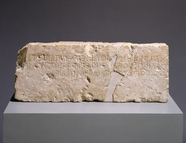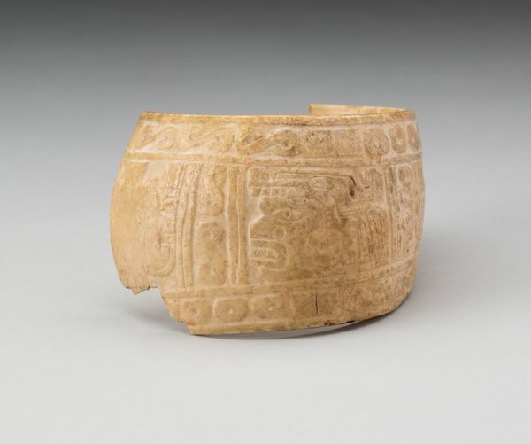 Curator: What an extraordinary piece. This is a Maya "Ballplayer Panel," likely created sometime between 700 and 800 AD. You can find it here at the Art Institute of Chicago. Editor: The surface is remarkably intact; given its age and that it’s a stone relief carving. It gives the scene an almost dreamlike quality, as if we're peering directly into a moment frozen in time. Curator: It’s thought that these panels narrated significant historical events, often political or military in nature, acting almost as royal propaganda. The iconography certainly suggests an elevated status, if we analyze social strata and its effect on consumption and visual materials. Editor: And consider the physical labor involved in creating such a detailed piece using rudimentary tools! We see these objects today divorced from their making, from the artisan labor and its conditions and techniques required for something like this. What kind of access would ordinary citizens have to witness its creation, or later, its installation and use? Curator: Well, these panels were public art. Installed on buildings, they were meant to convey the power and legitimacy of the rulers and elites. The ballgame itself was more than a sport; it was a ritual, often tied to warfare and sacrifice. Editor: Right, the games functioned as spectacle, consolidating the ruler’s symbolic authority through visual and spatial means, right? It's such a potent combination of political theater and tangible representation. Curator: Exactly. It makes you think about how societies build monuments not just to celebrate, but to control narratives, especially how the museums collect, protect and frame public perceptions of history. It influences identity, power relations, and the art's perception itself. Editor: Absolutely. Seeing how deliberately crafted and strategically positioned this relief panel was, helps appreciate both the incredible skill involved in its production, and the deliberate socio-political statement being made. It's a stark reminder that art never exists in a vacuum. Curator: Agreed. And to think, the legacy continues right here within our museum today.
