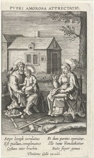 Jacob Matham created this engraving, "Couple Drinking in a Tavern Garden," using the subtractive process of carving lines into a copper plate. Consider the labor and craft involved; each line etched by hand, demanding precision and skill. The dense network of lines creates shading and detail, bringing the scene to life with texture and depth, while the smoothness of the print gives the image a starkness. Matham, through his skilled technique, elevates this everyday tavern scene to a commentary on society's relationship with pleasure and excess, giving this print social significance. The work invites viewers to reflect on how it was made, challenging traditional distinctions between fine art and the broader spectrum of craft.